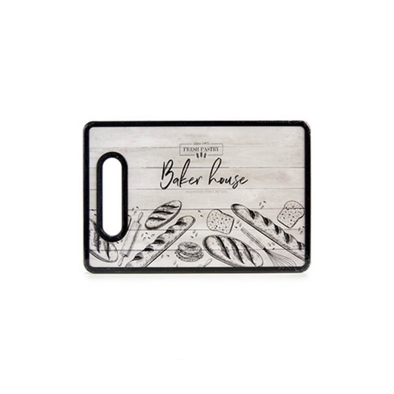 Tabla de cortar rectangular con el borde negro y con un asa en el extremo para poder agarrarla de manera firme. Está realizada en polipropileno resistente con la superficie decorada con dibujos, un imprescindible en todas las cocinas para cortar y picar...