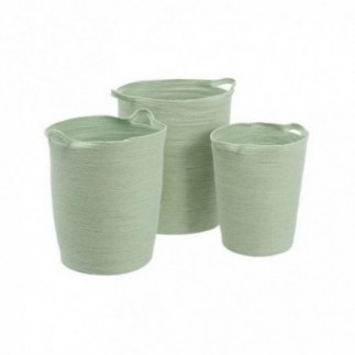 Cesto elaborado con cuerdas de papel en color verde claro. Cuenta con dos cómodas asas.