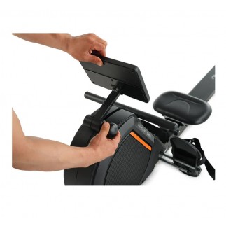 Coloca cómodamente tu teléfono móvil o tablet en el soporte para dispositivos para seguir a los entrenadores iFIT. Sólo tienes que conectar tu dispositivo, colocarlo en el soporte y ya estará listo para entrenar.