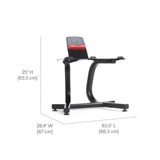 Dimensiones - Soporte BowFlex con Media Rack para mancuernas SelectTech: (La) 70.5 cm x (An) 52 cm x (Al) 62 cm.